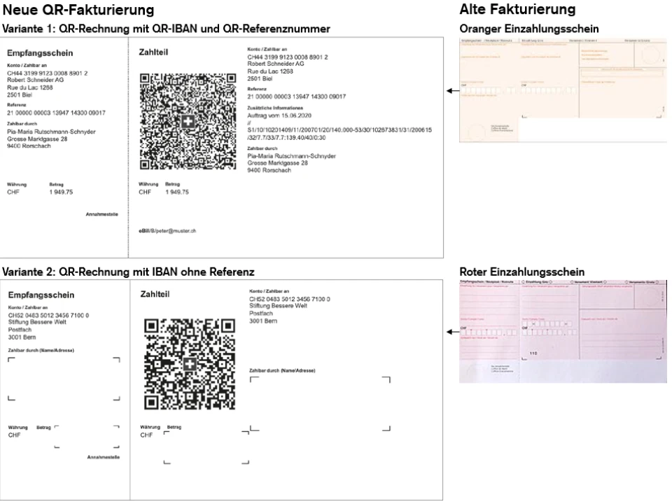 Per Ende September 2022 werden die alten roten und orangen Einzahlungsscheine durch die QR-Rechnung
